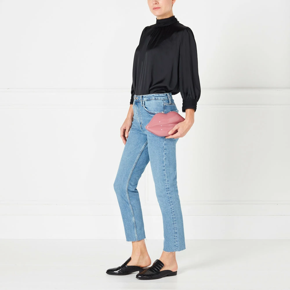 Own an icon with Lulu’s signature Lips clutch. Updated in seasonal antique rose colourway, this acrylic evening bag features magnetic closure, internal slip pocket and detachable gold chain cross body strap.