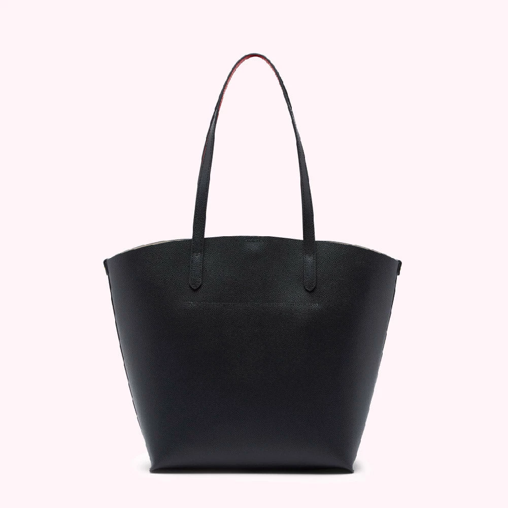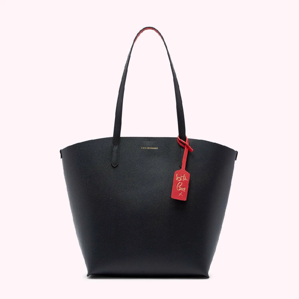 Effortlessly stylish, our Black and Red Agnes tote has a chic minimal shape and enough space to see you through weekend errands and beyond. She also features discreet but distinctive red enamel lip detail on the front and sides to keep things interesting.