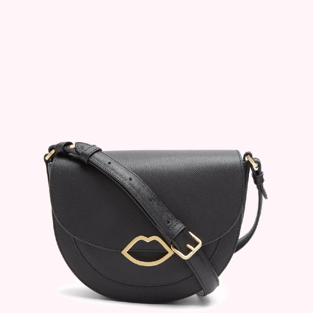 Embrace the timeless appeal of the modern saddle bag with our Black Esme. Crafted from premium leather, she features signature Lulu detail with gold cut out lip clasp and Cupid’s bow detail on reverse pocket.