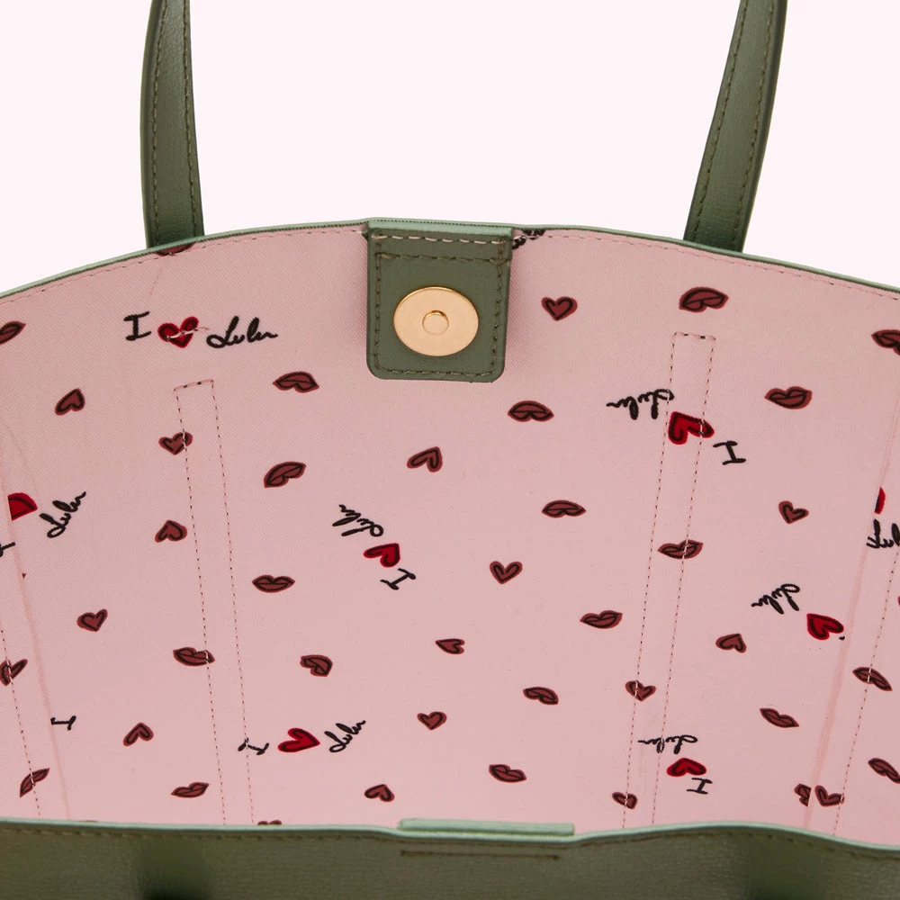 Introducing Garbo in Sage, our new favourite day bag with her modern tall shape, choice between grab handle and cross-body strap and playful ‘I Love Lulu’ lining. She’s the ideal size for throwing in all of your daytime essentials.