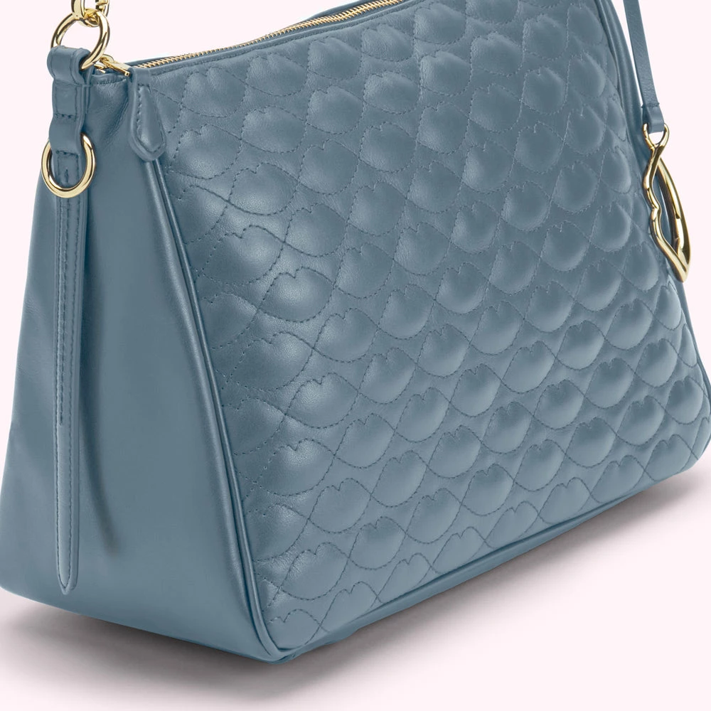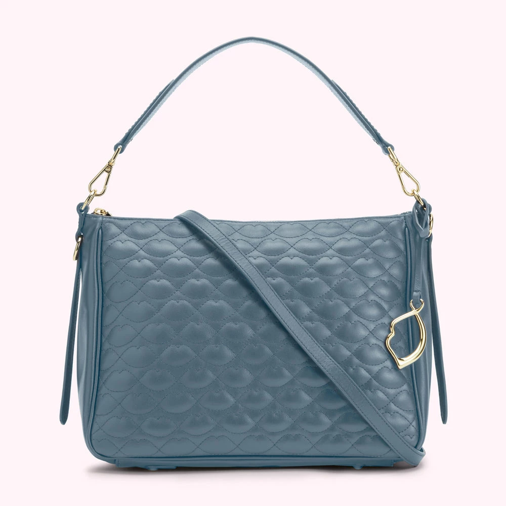 With signature lip-stamped design in luxury quilted leather, medium Callie in Seal blue is your new shoulder bag to fall in love with. It’s all in the detailing, with a longer strap to carry cross body, shiny gold hardware and cute detachable lip charm for a playful finish.