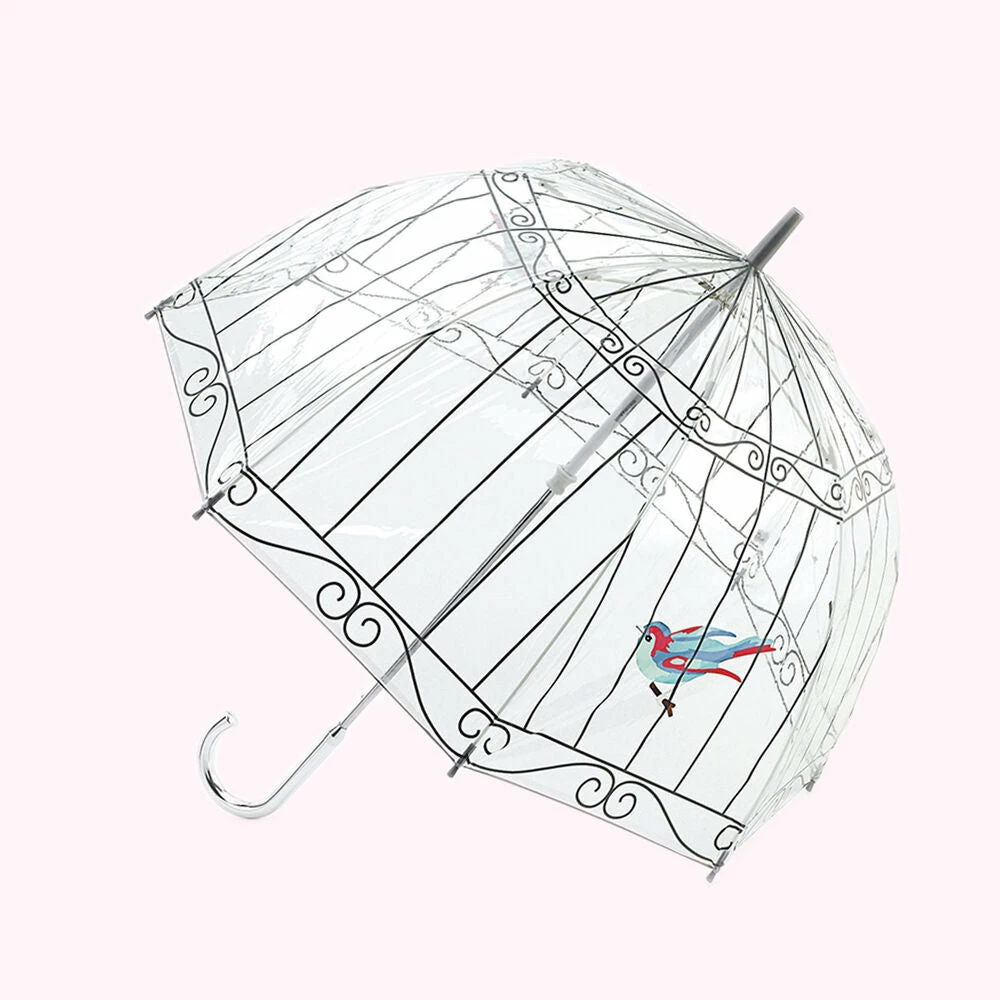 What better way to get rid of those dark clouds than by carrying a beautiful Birdcage Umbrella? Inspiration was taken from Lulu’s Birdcage collectable handbag. This umbrella is transparent pvc with grey birdcage and intricately printed birds.