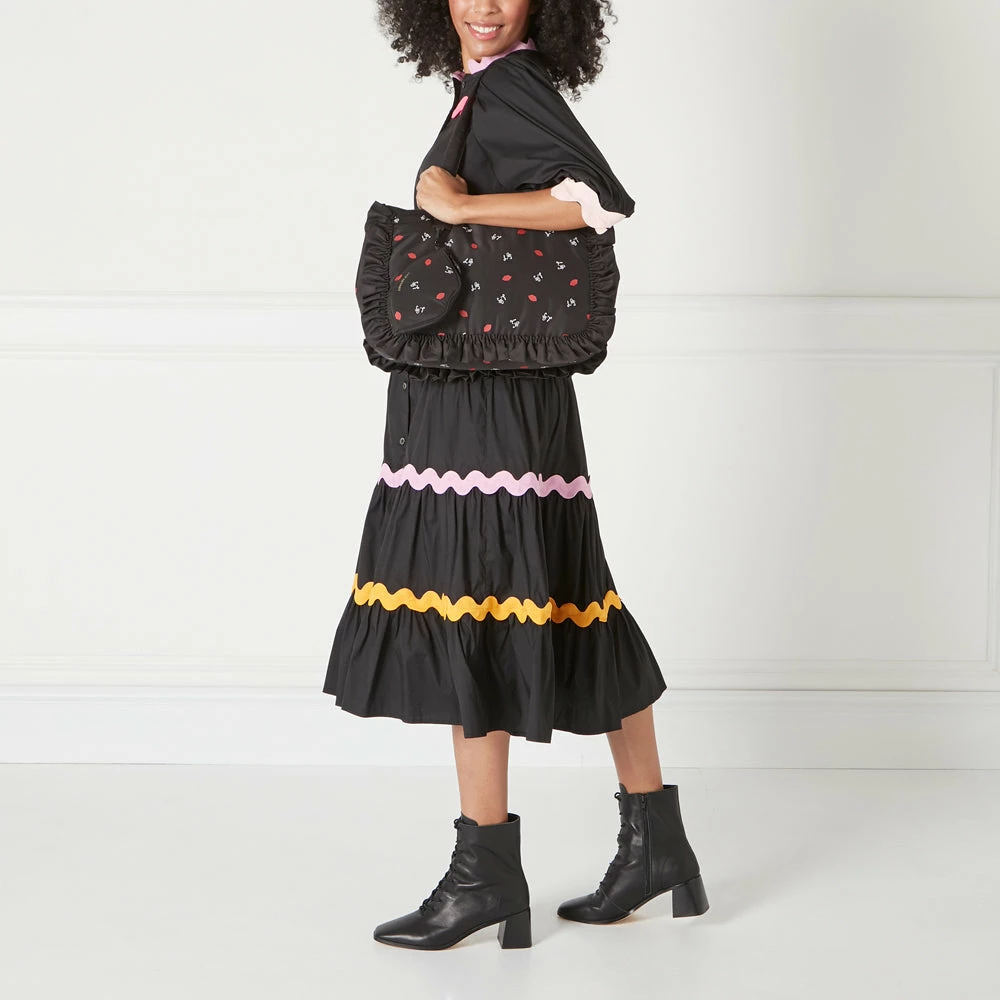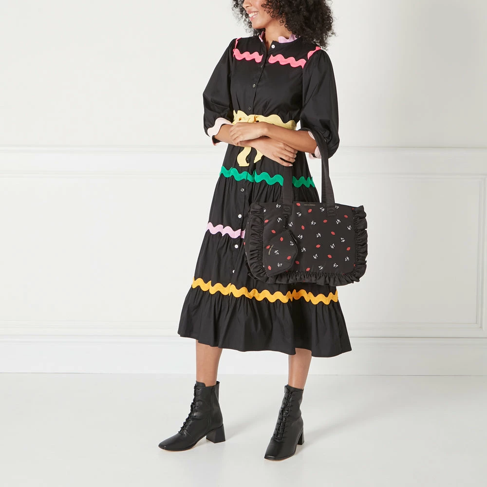 The Black printed Mia Tote is the perfect combination of playful and practical with its roomy size and detachable Lip pouch. Carry at the weekends or when travelling.