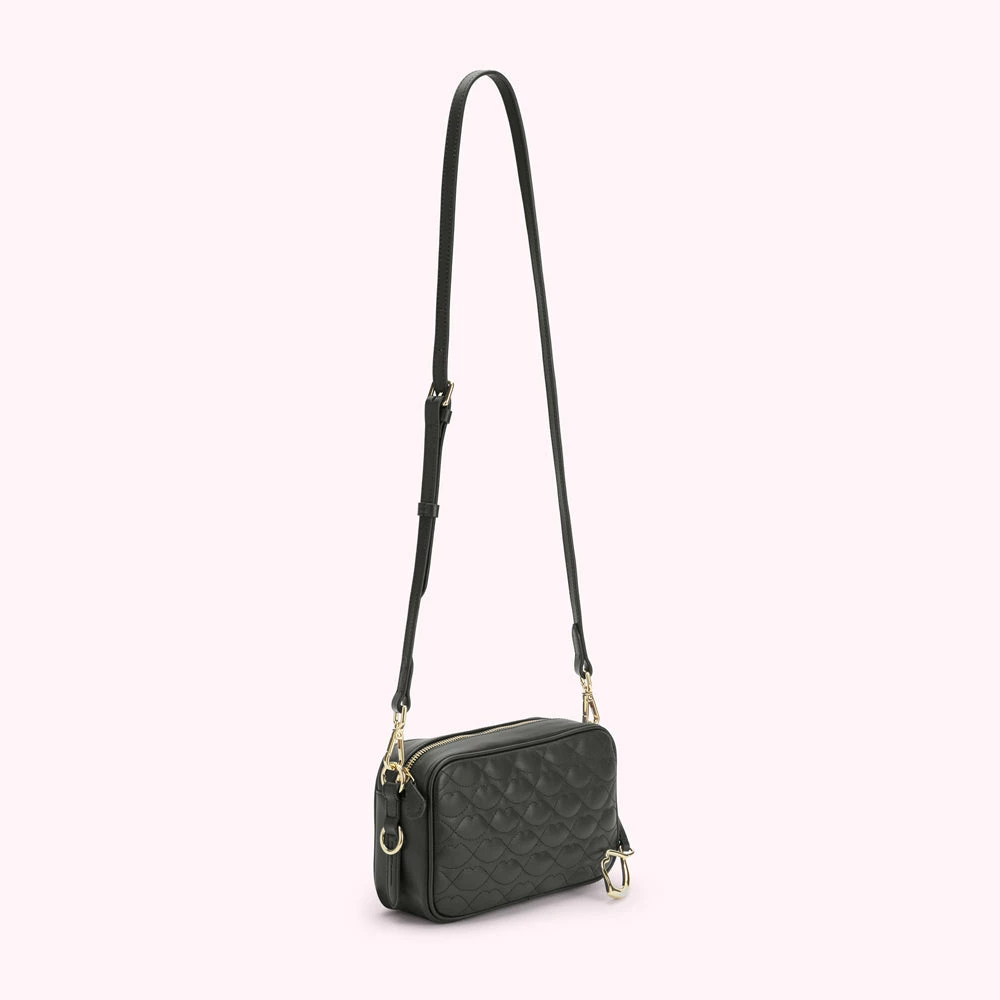 Meet Ashley, your new luxurious quilted leather crossbody featuring Lulu’s signature lip-stamped design. This tactile design has a large pocket on back for your iphone and new shiny gold hardware.