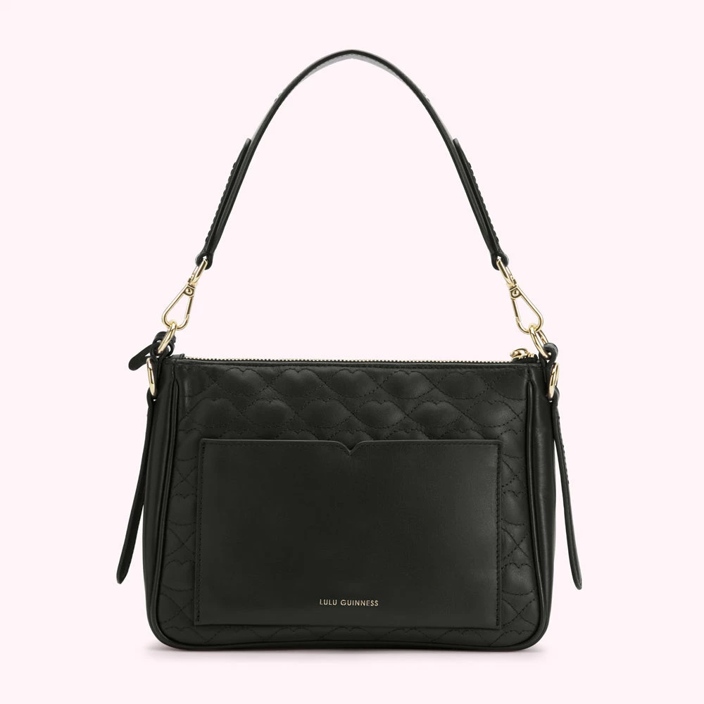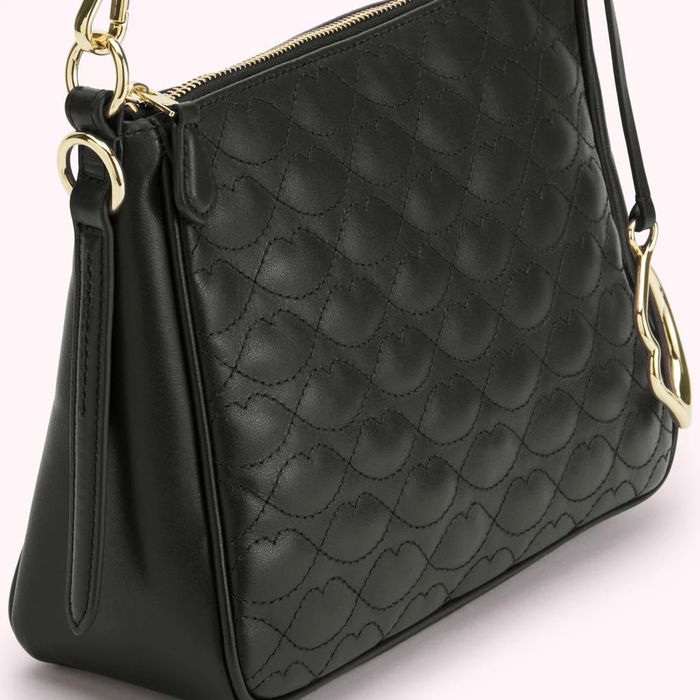With signature lip-stamped design in luxury quilted leather, Callie in classic Black is your new shoulder bag to fall in love with. It’s all in the detailing, with a longer strap to carry cross body, shiny gold hardware and cute detachable lip charm for a playful finish.