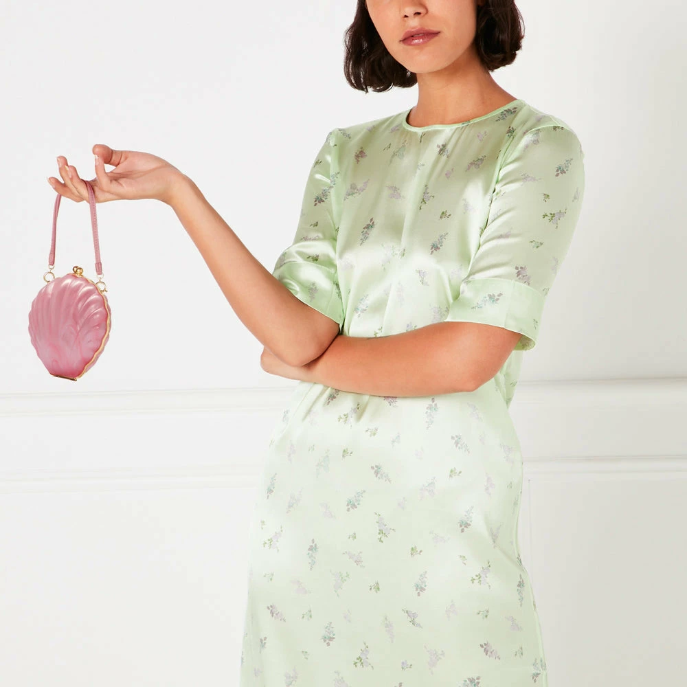 The world is your oyster! Evocative of beaches in far flung places but also incredibly nostalgic, our tactile Pink shell clutch is a guaranteed talking point, whatever your occasion. Comes with a detachable lip charm gold chain for extra wearability and note the interior’s embroidered message and giant pearl – the hidden Lulu detail just for you.