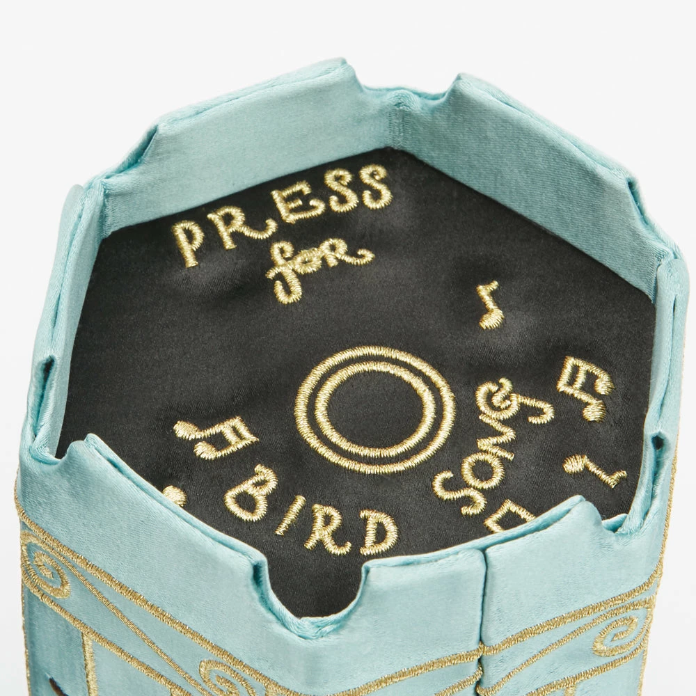Reissued from the archive, one of Lulu’s most popular collectibles is the embroidered Blue Birdcage, which sings when you press a secret button hidden in its base. First created in 2002, this whimsical style is sure to turn heads.
