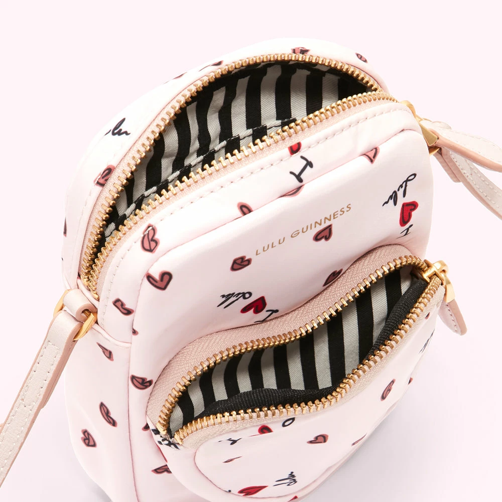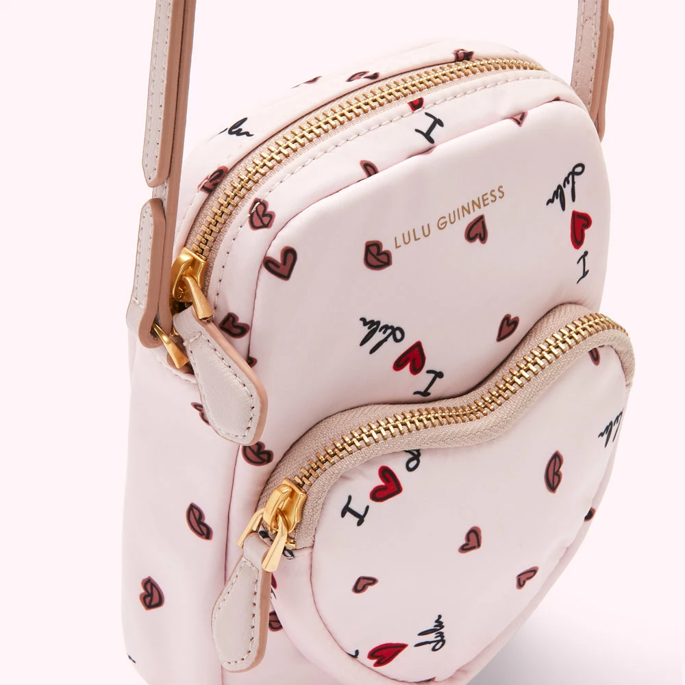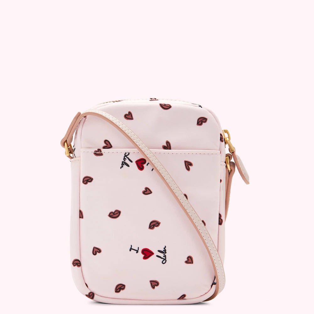 Share the love with new casual cross-body Davis in Blush featuring heart-shaped zip front pocket, playful I Love Lulu print and a pleasingly squishy texture. She’s the perfect bag for fun weekend adventures.