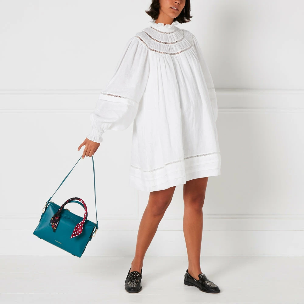 Our favourite compact day bag has been given a fresh update in jewel-toned Emerald leather. Dylan’s appeal is all in the detailing – from the subtle cupid’s bow to the antique gold zip and retro-inspired scarf adornment.
