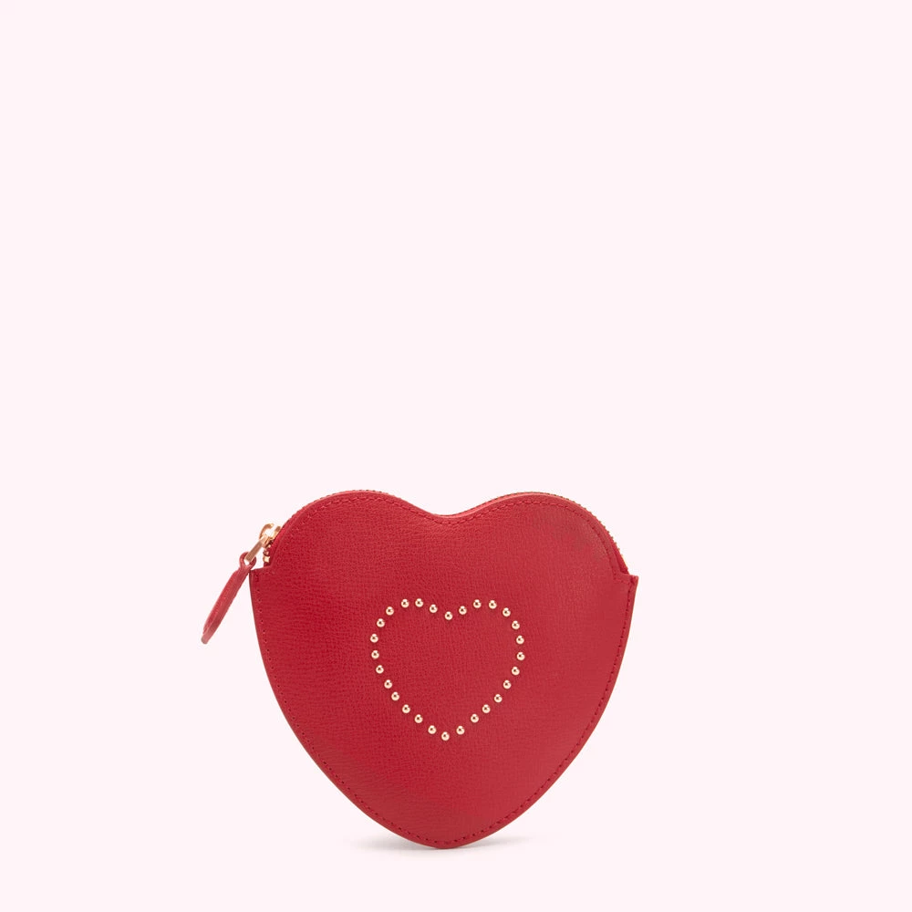 Make your heart race everyday with this Lulu Red and Blush heart-studded coin purse – it makes the perfect gift.