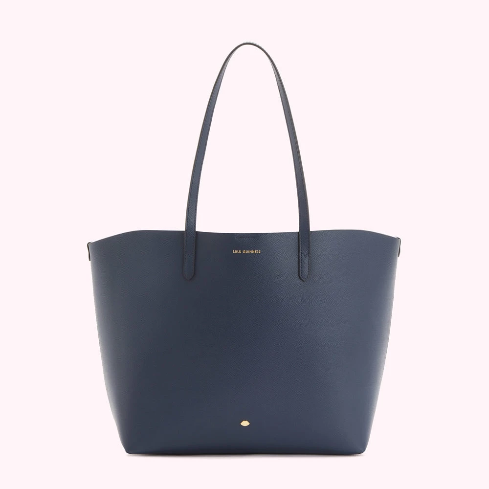 Carry it all with our spacious Ivy tote in navy. Crafted from lightweight leather she features a soft structure, gold lip pin detail on front, internal slip pocket and ultra soft biscuit beige lining.