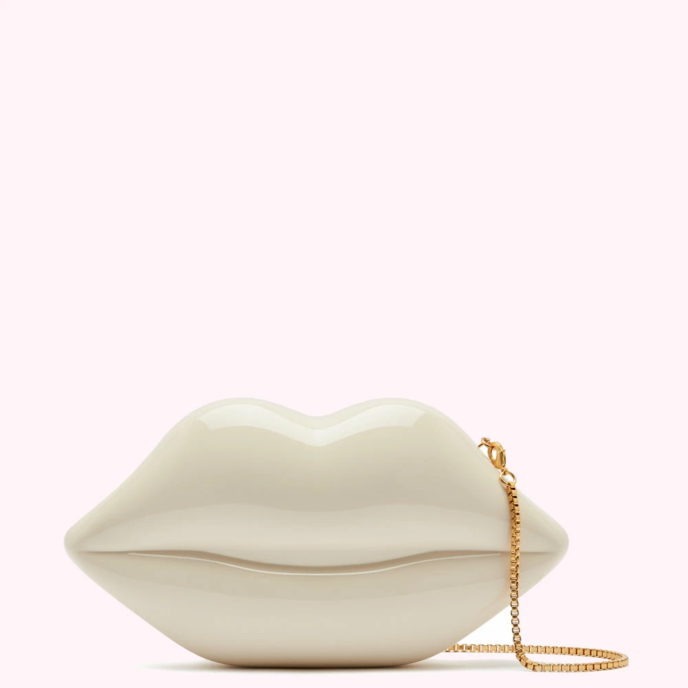 Own an icon with Lulu’s signature Lips clutch. Updated in a medium size, this acrylic evening bag features magnetic closure, internal slip pocket and detachable gold chain strap so she can be styled as a cross body or over the shoulder.