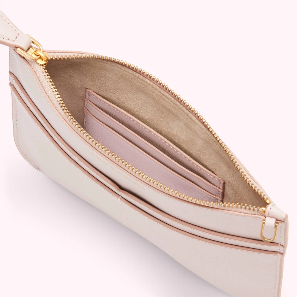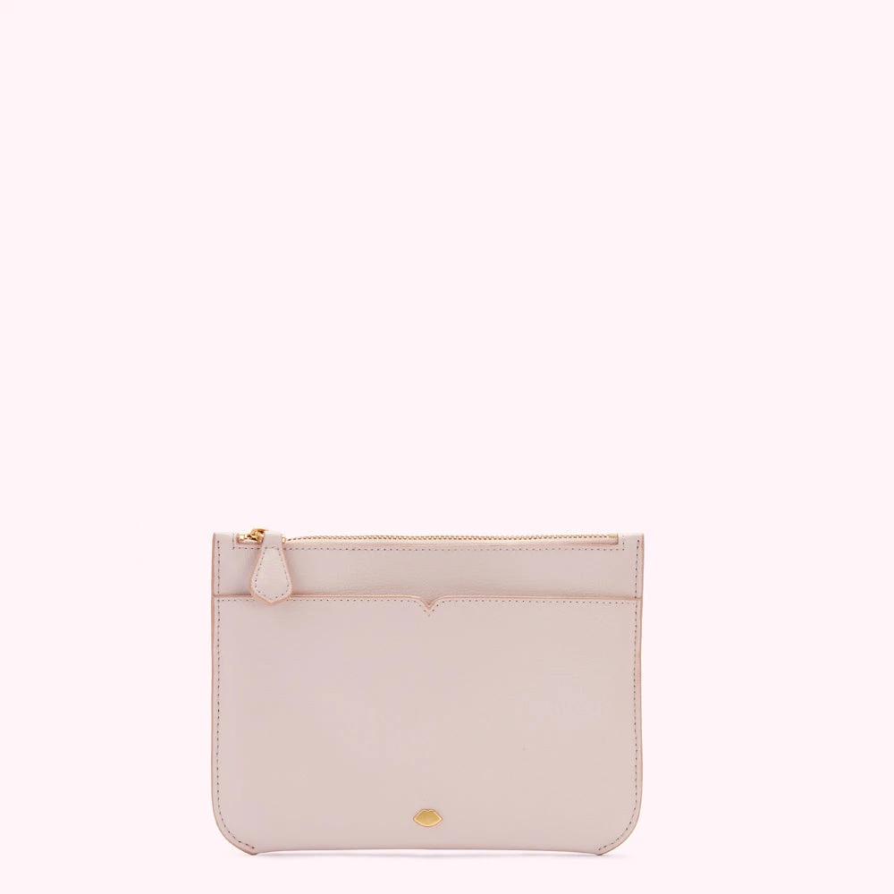 Because your smaller items need somewhere nice to live, we give you Ava in Blush leather – our small and perfectly formed lip pin pouchette. She has card slots, a zip fastening and a wristlet for when you want to carry it solo.