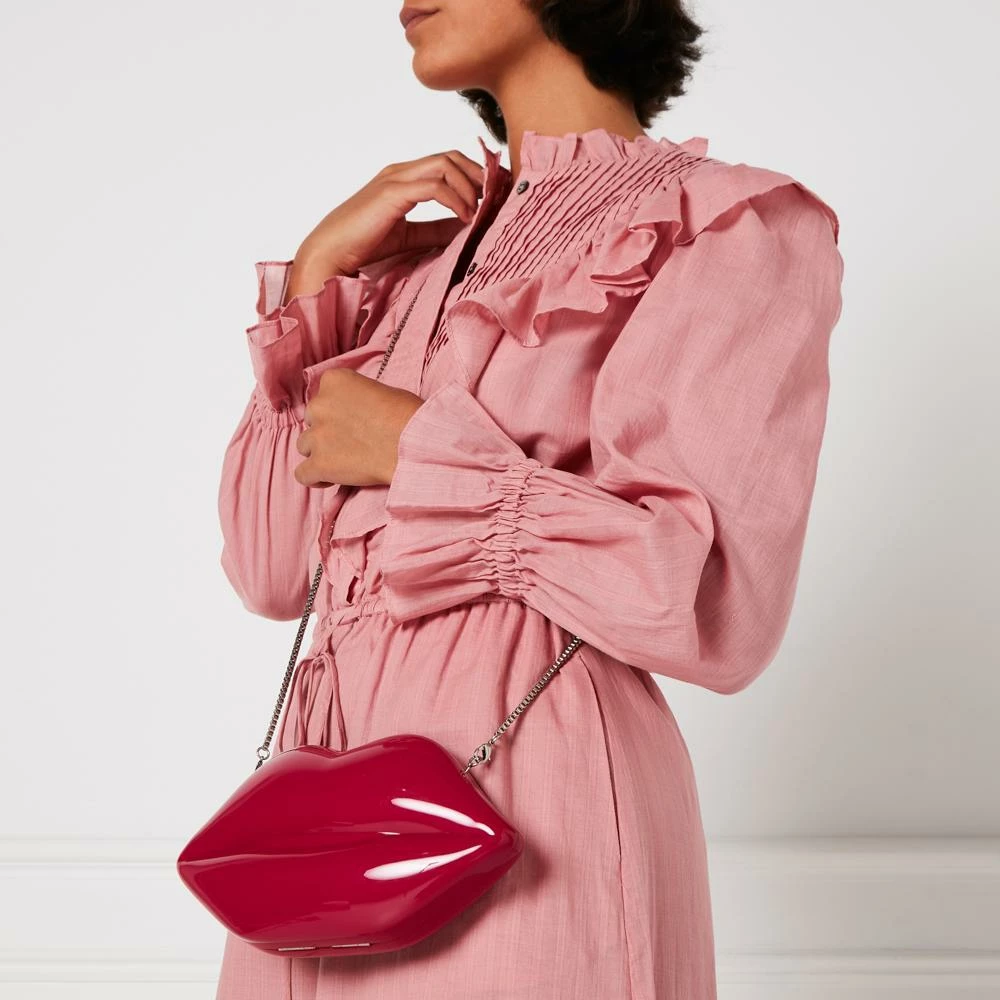 Own a glamorous icon with Lulu’s signature Lips clutch. Updated in AW20’s raspberry, this glossy, pop-art inspired evening bag features a magnetic closure, internal slip pocket and detachable silver chain crossbody strap.
