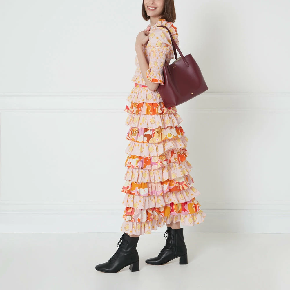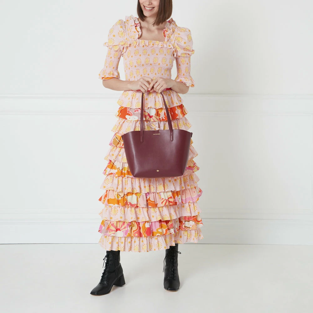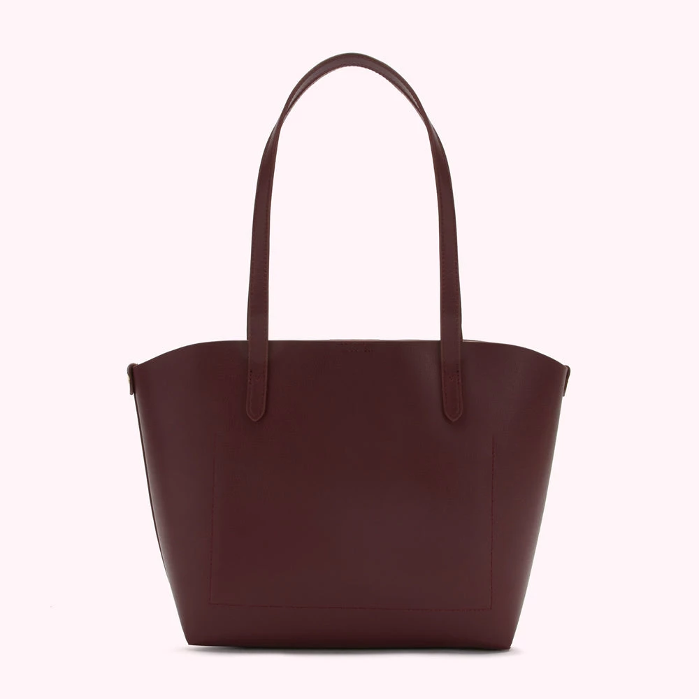 Crafted from lightweight crossgrain leather, carry it all with our spacious Ivy tote in Rosewood. With a soft structure, look out for the gold lip pin detailing on front, internal slip pocket and ultra soft biscuit beige lining.
