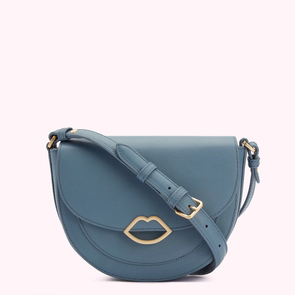 The Esme saddle bag in Seal blue is crafted from premium leather, she features signature Lulu detail with gold cut out lip clasp and Cupid’s bow detail on reverse pocket. The perfect grab-and-go bag.