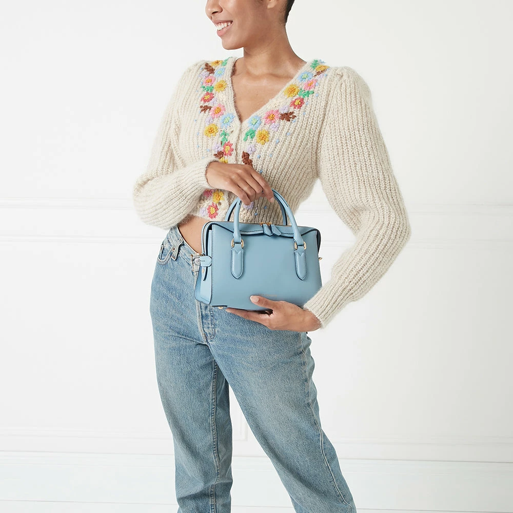Reminiscent of a retro Doctor’s bag, everyone needs a Dylan – now updated in beautiful Wedgewood Blue. Crafted from premium leather, this hand-held day bag features our signature cupid’s bow detail and a cross-body strap for when you’ve got to dash.